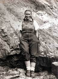 Y a nivel internacional también consiguió realizar escaladas relacionadas en la historia del montañismo español, además de grandes hazañas de esquí: en 1951 fue la primera mujer que bajó esquiando el “Pas de Chévre” en los Alpes. En el mes de junio del mismo año, 1951, con Joaquín López y el austríaco Rudolf Schiendl, realizó la primera femenina y la segunda nacional a la cara N de la Pique Longue.