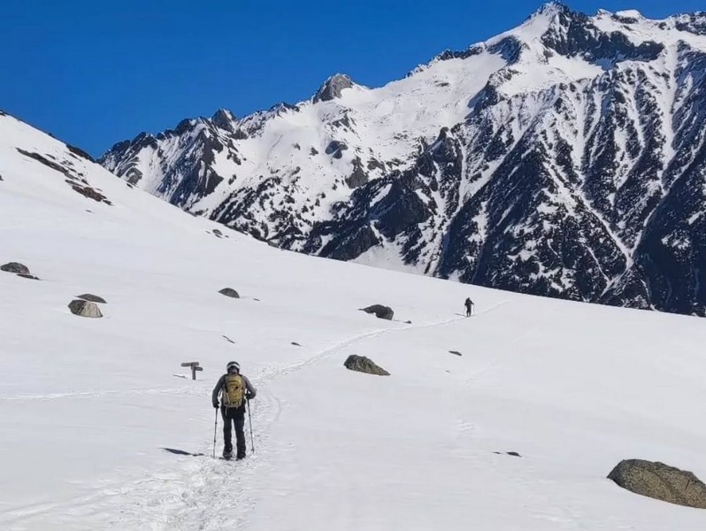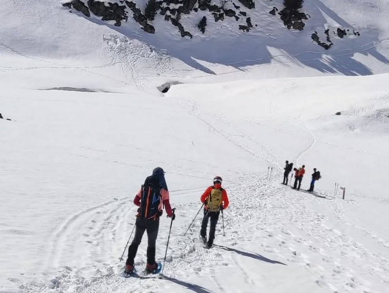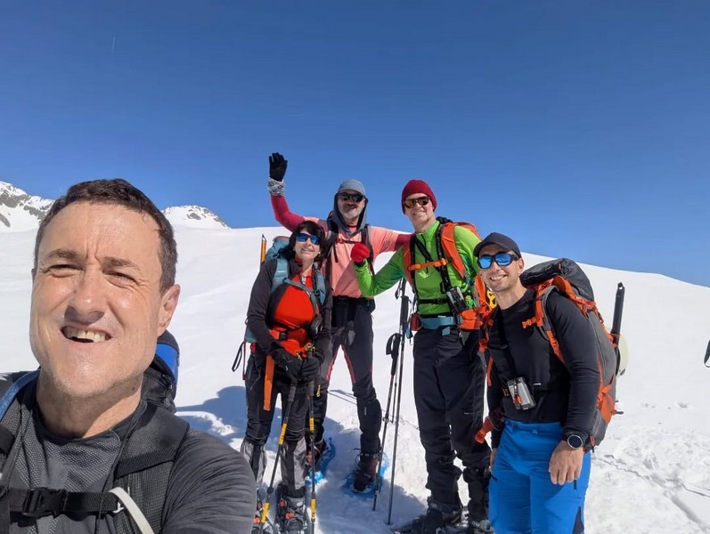 Dada la cantidad de nieve y su buena calidad, pudimos utilizar tanto raquetas como esquís.