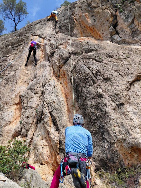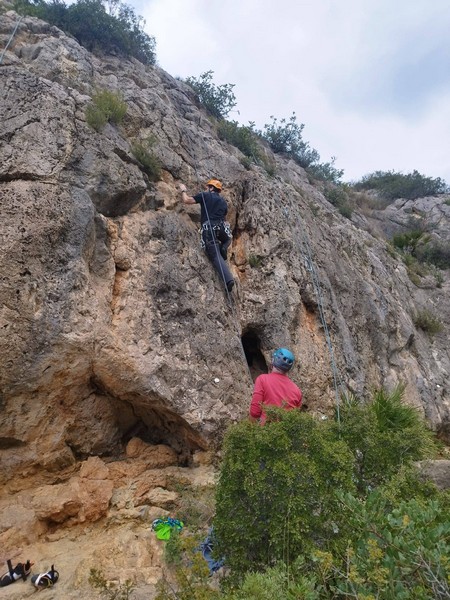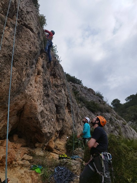 Hoy nos hemos desplazado un grupo numeroso a Borriol, al Racó de Farol, en sus sectores Central e Iniciación. Se han escalado vías de distintas dificultades, sin olvidarnos de los miembros nobeles, a los que se les ha acompañado al sector de iniciación en donde han podido disfrutar de vías más acordes a su nivel de progresión.