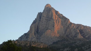 Montamos la tienda “sherpa” en los campos de secano de la zona alta del pueblo con el firme propósito de intentar abrir una vía de escalada en la inmensa e impresionante pared caliza del Puig Campana por una ruta que creo recordar estudió y nos contagió su interés