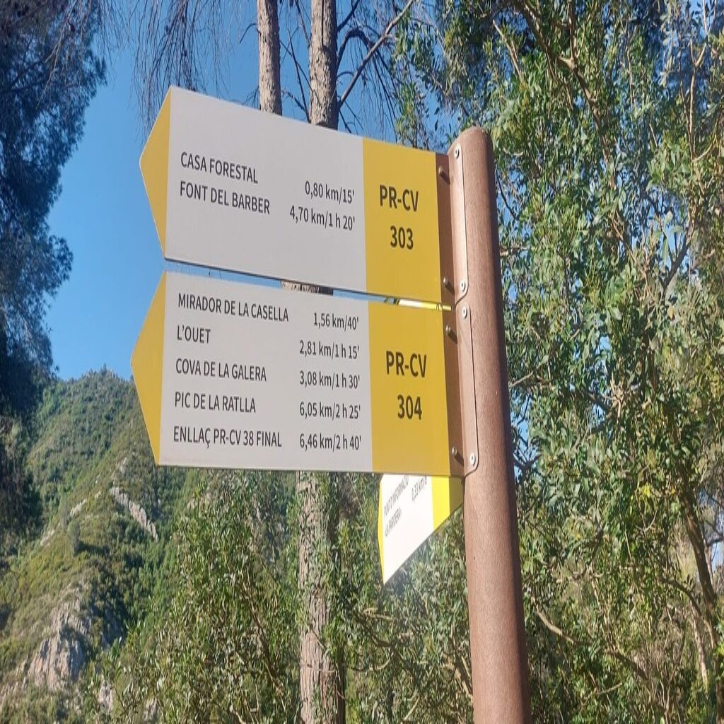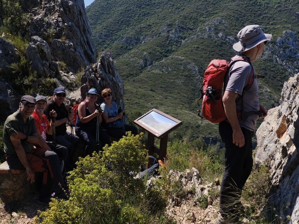 La ruta partió del bar de La casella en plena pinada. para tomar por pista forestal el PR en dirección a la casa forestal y reserva ciervos. La pista sigue subiendo  por el valle hasta desviarse por una senda que asciende pegada a las paredes. para en un zig zag de la senda superar la cresta y llegar al Ouet un antiguo observatorio desde donde se puede disfrutar de las panorámicas hacia el mediterráneo (Cullera, Albufera, etc..) y  también de las montañas del interior  de Valencia  y Alicante. Tras regresar por el mismo sendero almorzamos en las mesas de pic nic de la casella en un entorno forestal y natural de gran valor en Alzira y la Ribera
