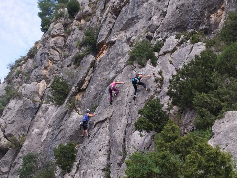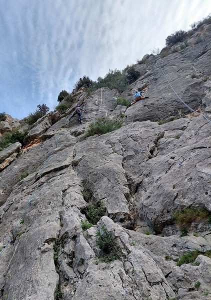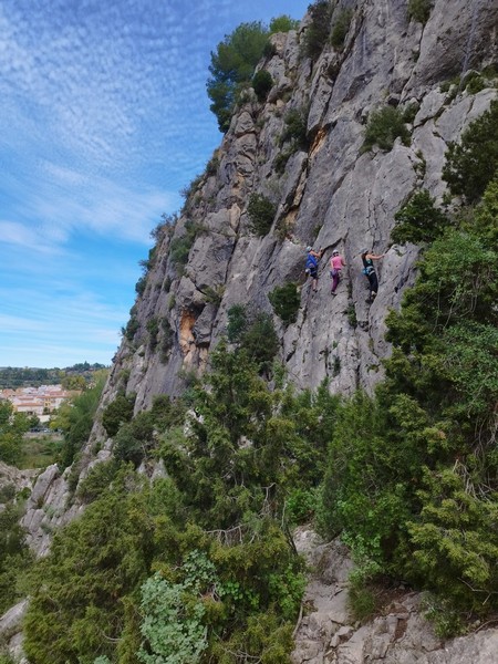 Volvemos a Jérica buscando la sombra ya que se preveía un día de sol y calor. Hoy hemos estado en el sector Horta Vertikal, mucha escalada hasta que ha asomado el sol y nos ha hecho buscar de nuevo la sombra en el paseo junto al río y la fuente Randurias, un picar, charla y risas