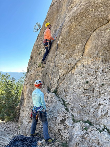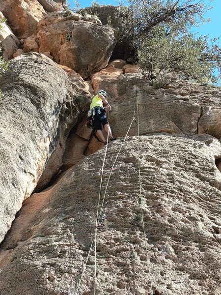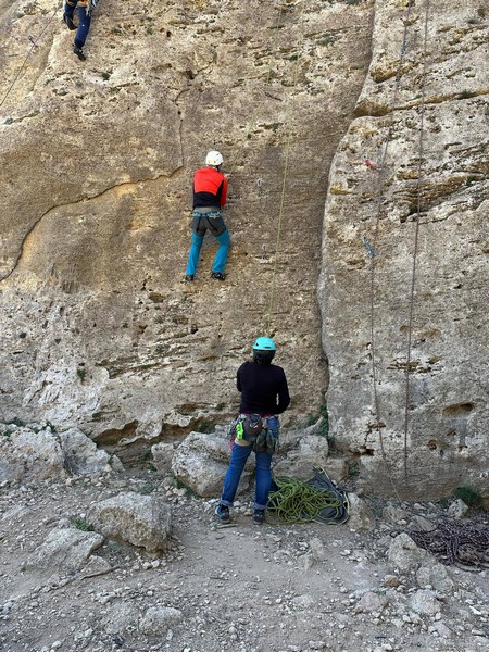 De nuevo escalando en Montesa, día espléndido y buen grupo, nos hemos ido desperdigando por diferentes sectores, con calor al sol y en manga larga en la sombra, eso sí…¡por fin sin viento!