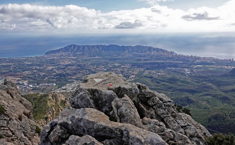Desde el collado seguimos subiendo por la ladera sur hasta llegar al Coll del Llamp, a 977 metros de altura. Aquí hacemos una pequeña parada y nos preparamos para acometer la última rampa hasta la cima. Tomamos la senda que sube por la ladera norte y llegamos al punto geodésico que nos sitúa a 1.182 metros sobre el nivel del mar. Después de un pequeño descanso y de disfrutar de las magníficas vistas, emprendemos el descenso.